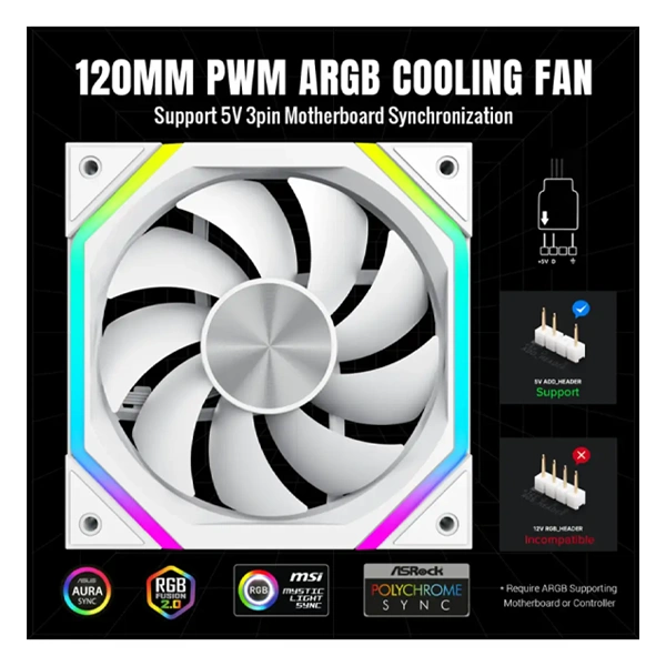 GAMEMAX FN12A-N2 White 120mm ARGB Case Fan