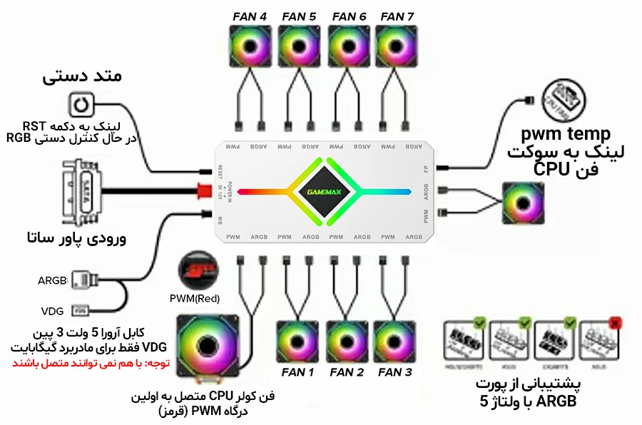 راهنمای توضیحات V4.0 ARGB HUB PWM